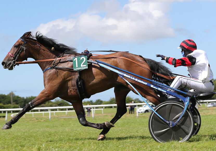 7.Dream: Déferré des quatre pieds et confié à Alexandre Abrivard ,il a un bon engagement au premier poteau. Va faire l’arrivée.